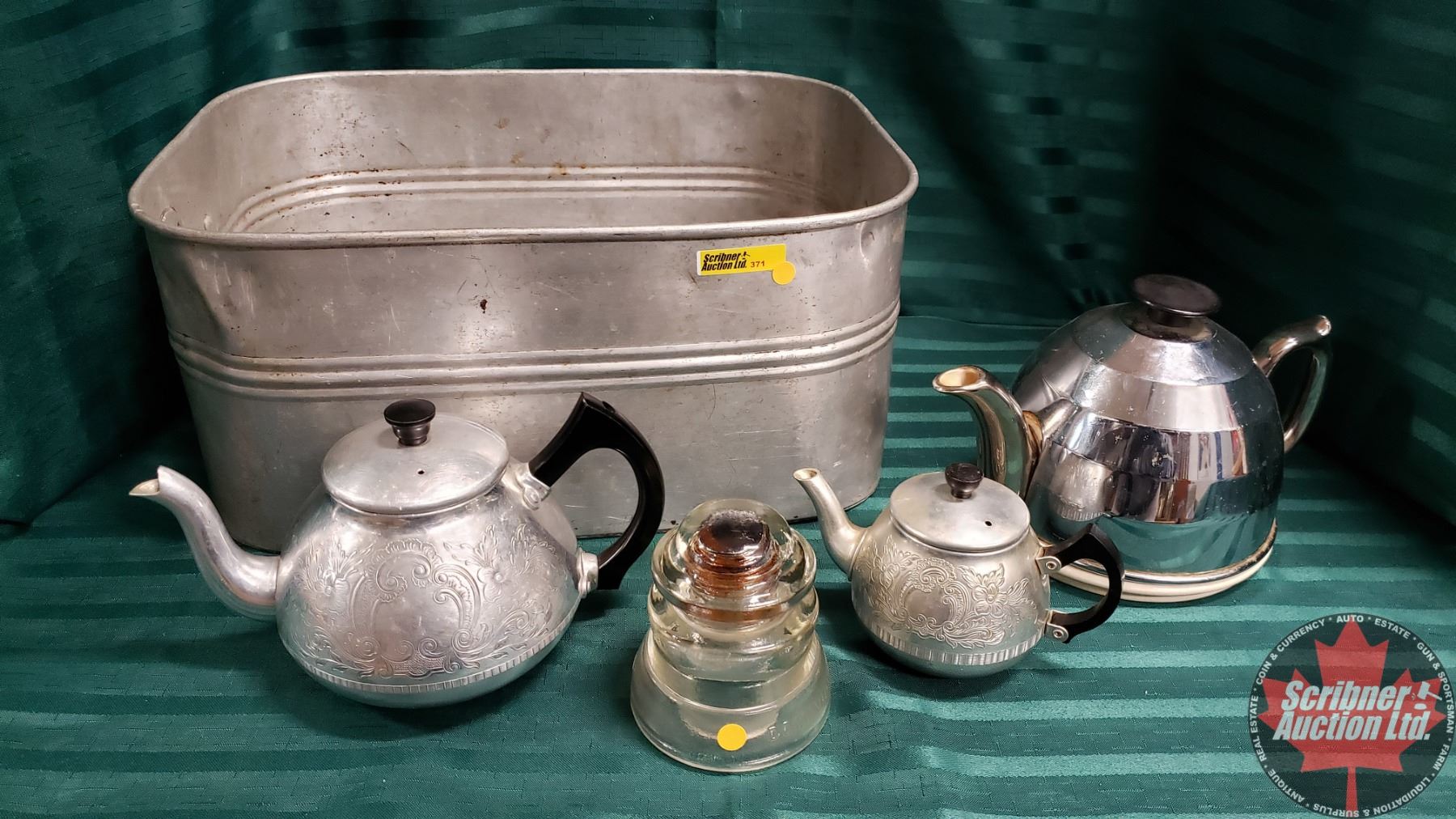 Basin w/Movable Bottom & 3 Teapots & 1 Insulator