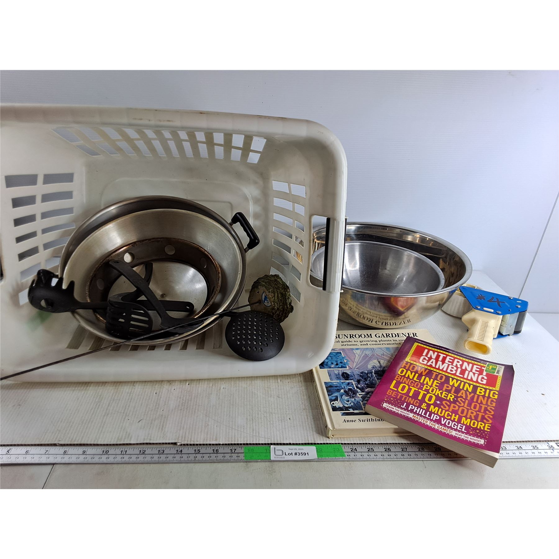 Basket Of Miscellaneous Bowls/Books - PICK UP