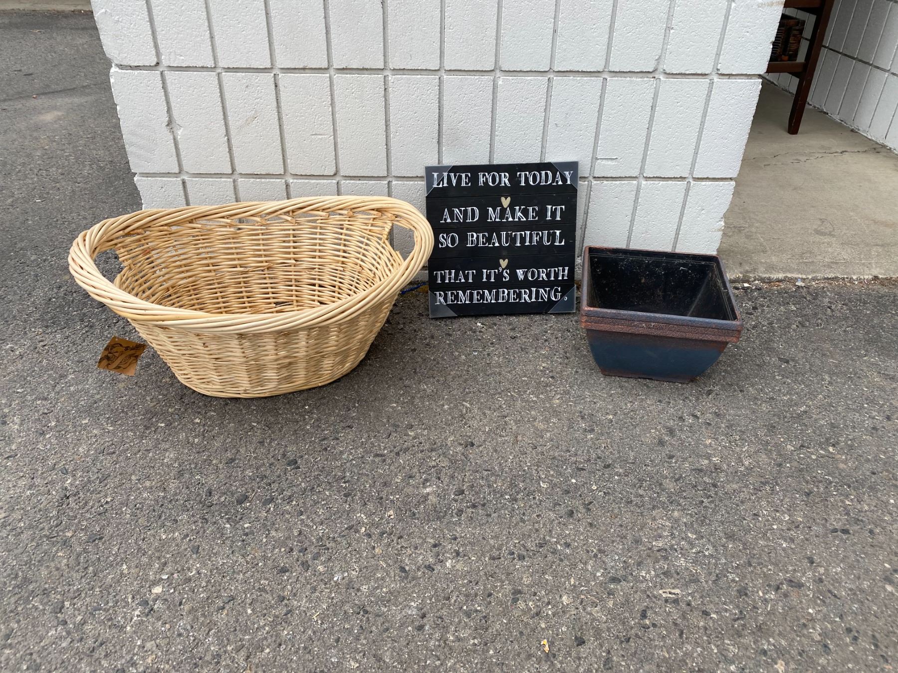 Basket, planter pots and wall hanging
