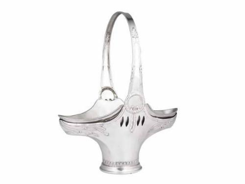 Silver, 175 g. Pressed and pierced decoration, silver-plated metal inner part. Marked: German, 800- mark of fineness, and import mark from Prague. Circa 1900 Size: 24 cm