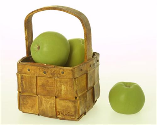 Basket with apples, ceramic, Ingrid Herrlin, sign. I Herrlin, H 19.