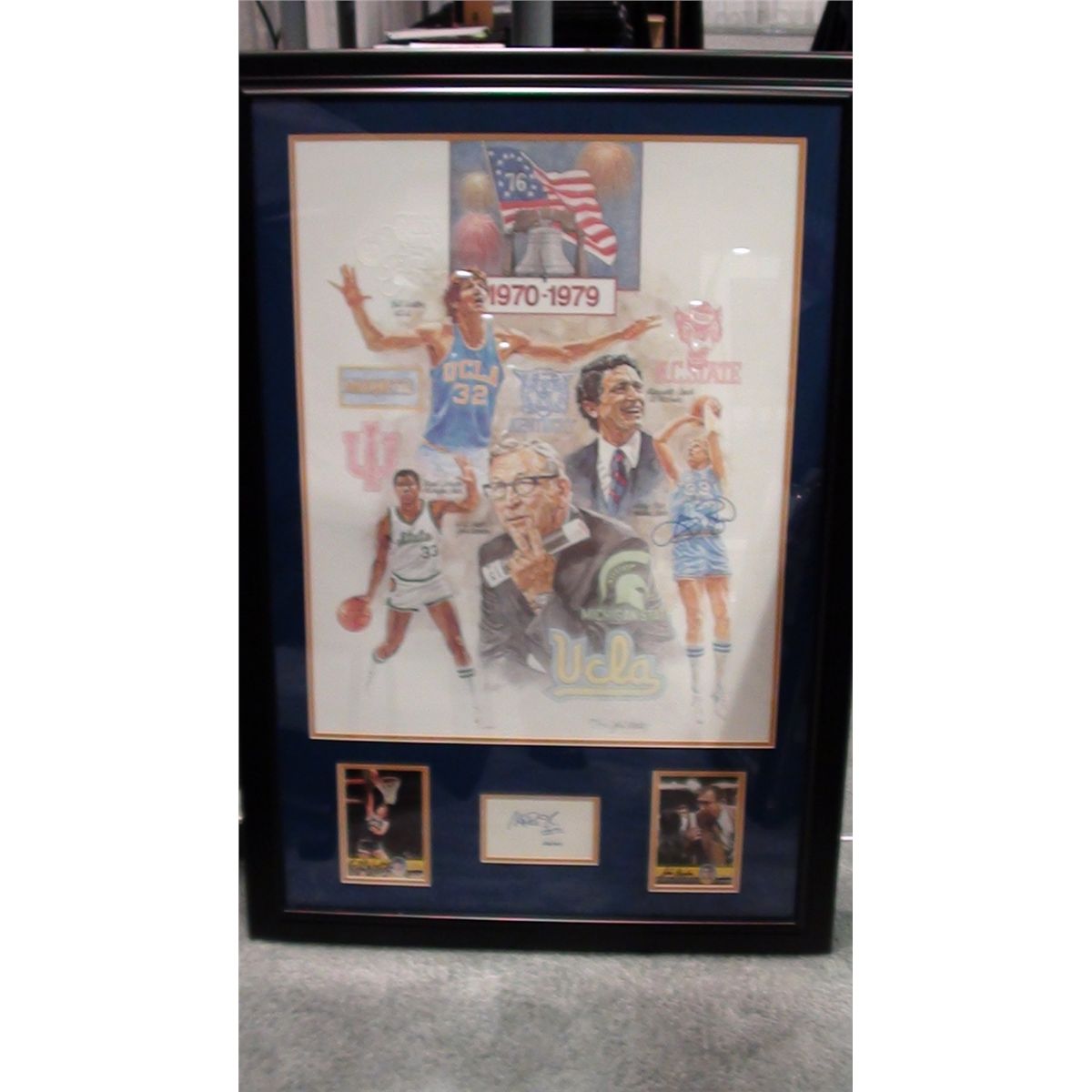 50th Anniversary Final Four - Signed By Larry Bird, Framed W/ Signed Photo Cards of Walton & Wooden & Signed Cut By Magic
