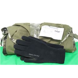 DUFFLE BAG AND PAIR OF SEAL SKINZ GLOVES