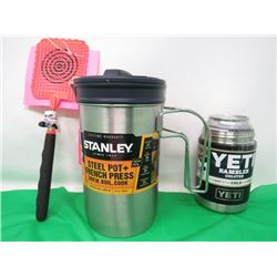 STANLEY STEEL POT/FRENCH PRESS, YETI RAMBLER CAN COOLER, FLY SWATTER