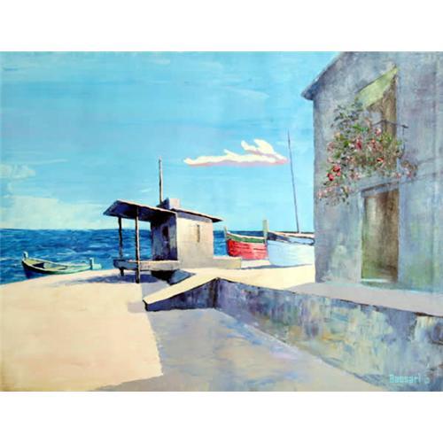 <tr><td>Title:Bassari, Three Boats Seaside Spanish Painting</td></tr>