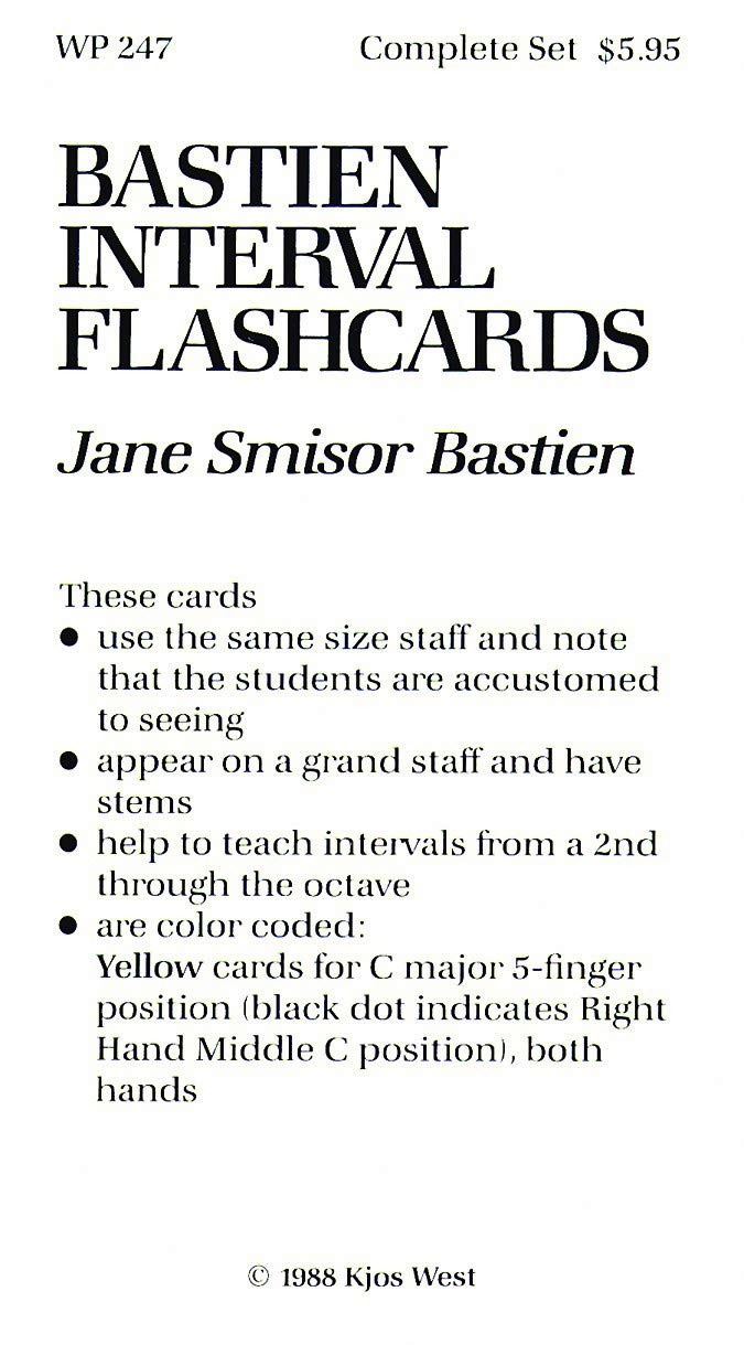 These flashcards teach melodic intervals from a 2nd through the octave and are color coded for C major 5-finger position, 6ths, 7ths, and octaves. The cards use the same size staff and notes students are accustomed to seeing on a grand staff.