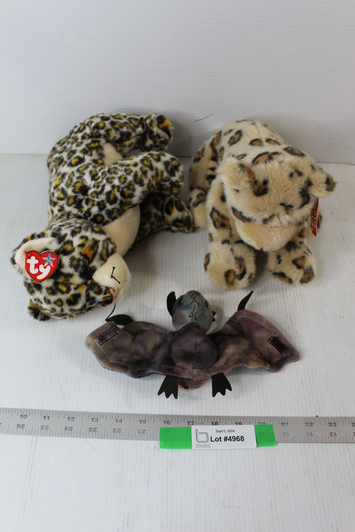 Bat Plushie Stuffy, (2) Leopard Plushies