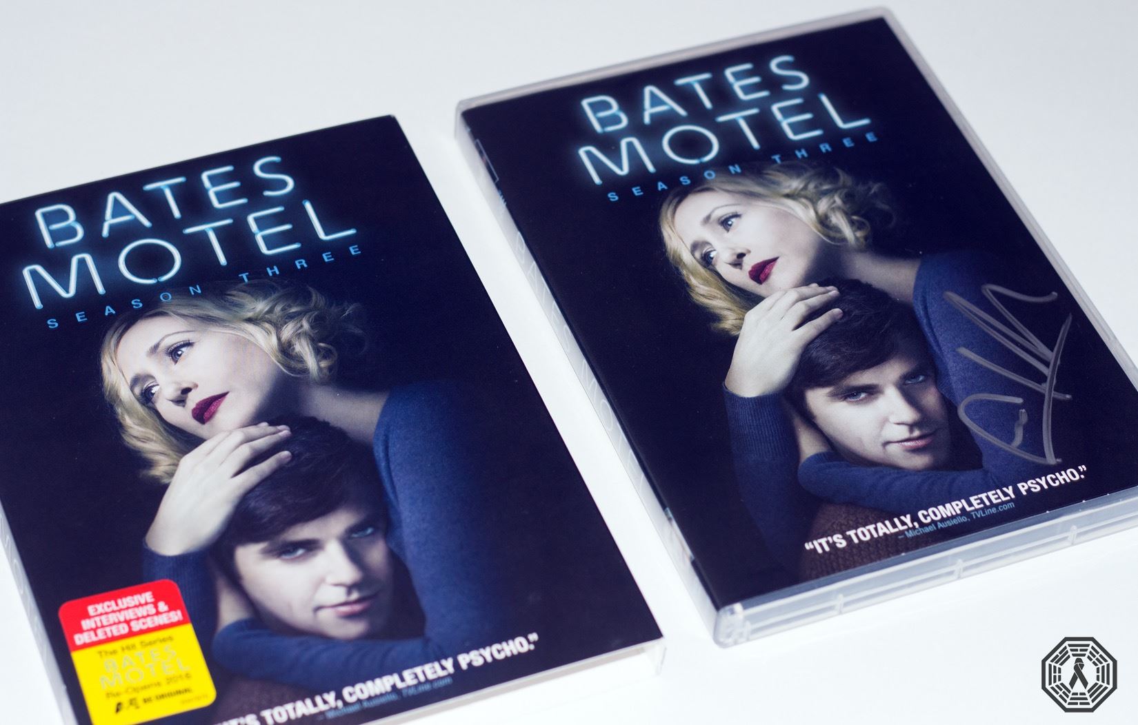 Bates Motel: Season 3 DVD. Signed by Freddie Highmore. New, opened only to get signed. Bates Motel: Collector's Edition Vinyl. 2xLP Picture Discs, hand-assembled pop-up gatefold, illustrated pull-out poster, liner notes on Bates Motel letterhead, original music by Chris Bacon. New, in original packaging. Donated by Jo G. Includes bonus Sheriff Romero photo. 8 x 10 inches. Signed and donated by Nestor Carbonell.
