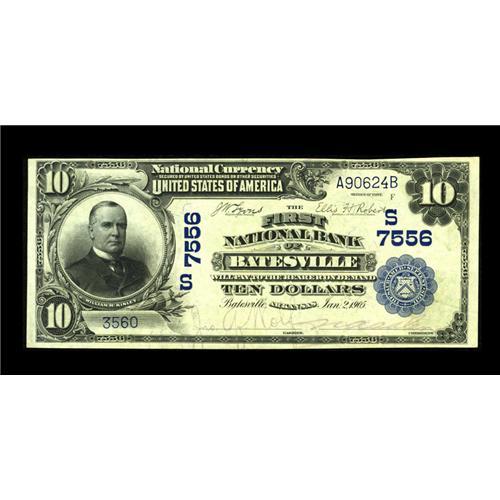 <B>Batesville, AR</B></I> - $10 1902 Date Back Fr. 616 <B>The First NB</B></I> Ch. # (S)7556<BR>A high grade large example. <B>Extremely Fine+,</B></I> with purple signatures.<BR><I>From The Jacob and Heather Dedman Collection</B></I><BR><BR><b>Shipping:</b> Coins & Currency (<a target="_blank" href="http://www.heritageauctions.com/common/shipping.php">view shipping information</a>)