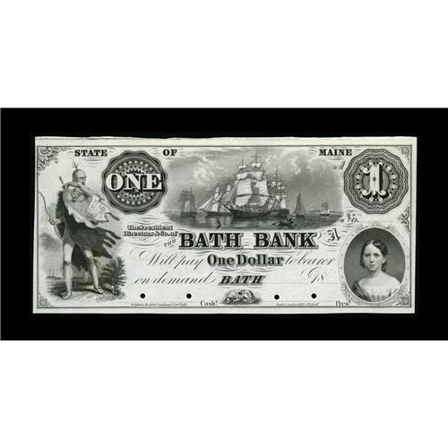 <B>Bath, ME- Bath Bank</B></I> $1 Haxby UNL Wait 3 Proof<BR>A most attractive ex-ABNCo sale Proof with a nice maritime central vignette. <B>Uncirculated,</B></I> 4 POC.<BR><BR><b>Shipping:</b> Coin/Currency (<a target="_blank" href="http://www.heritageauctions.com/common/shipping.php">view shipping information</a>)