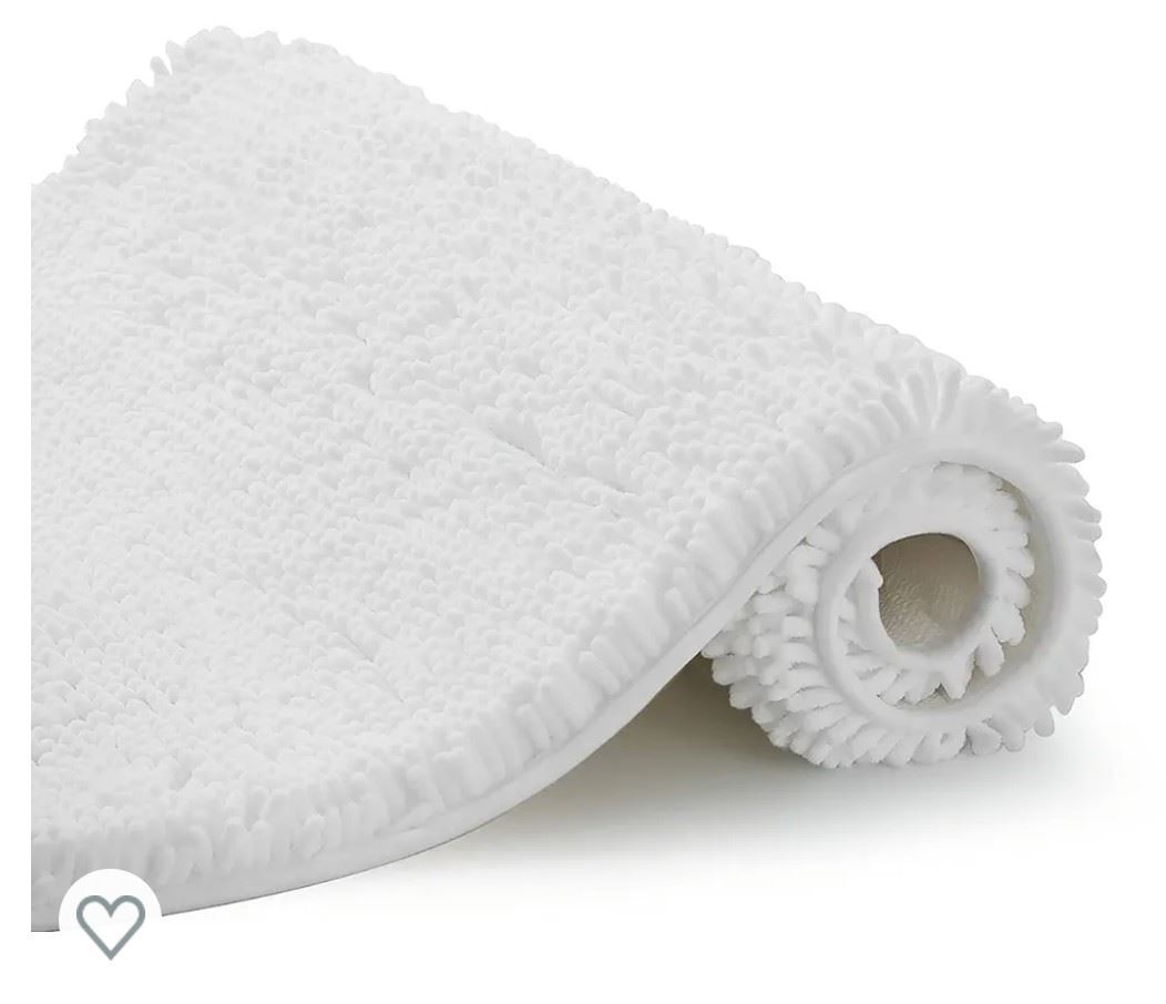Luxury soft bathroom rug, non-slip backing, white, machine washable, new.