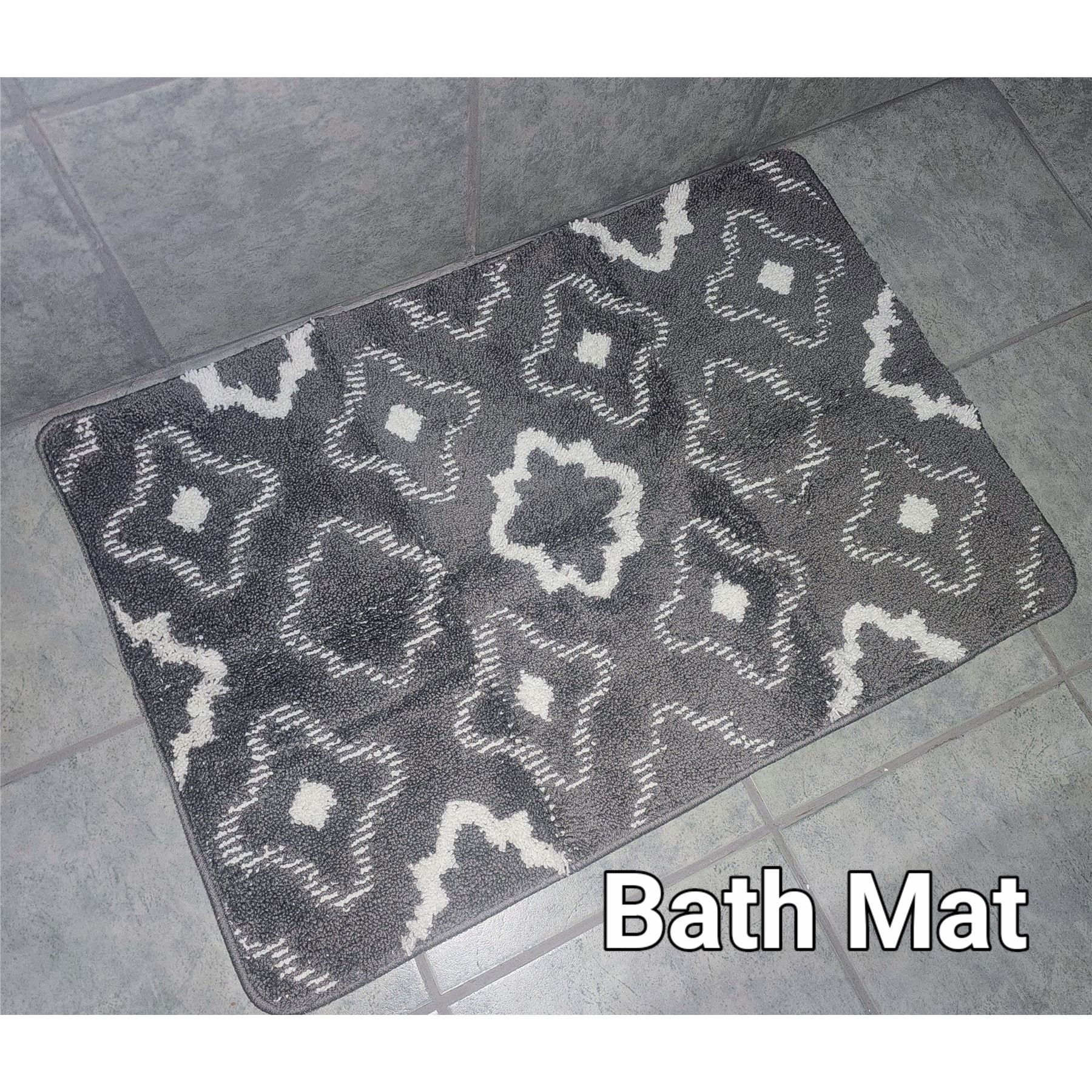 Plush microfiber absorbent mat with non-slip backing, stylish geometric pattern, machine washable, new.
