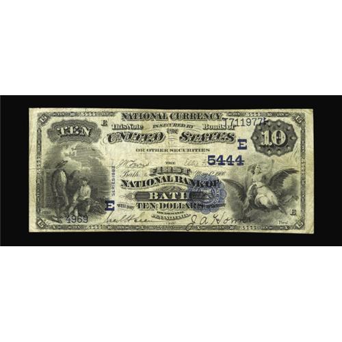 <B>Bath, PA</B></I> - $10 1882 Value Back Fr. 577 <B>The First NB</B></I> Ch. # (E)5444<BR>Only three pre-1902 notes in the census for this bank. Nice pen signatures and original surfaces adorn this $10. <B>Fine.</B></I>