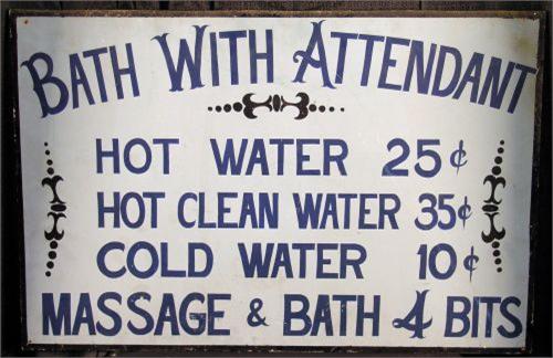 "Bath with Attendant" sign with prices not real old 36"x24"