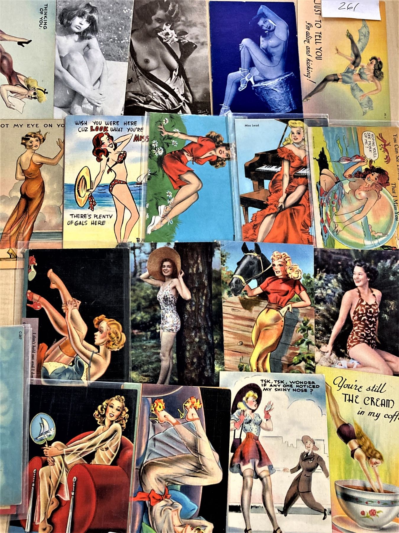 Arcade, linens to standard size chrome mainly. Several linen comics.