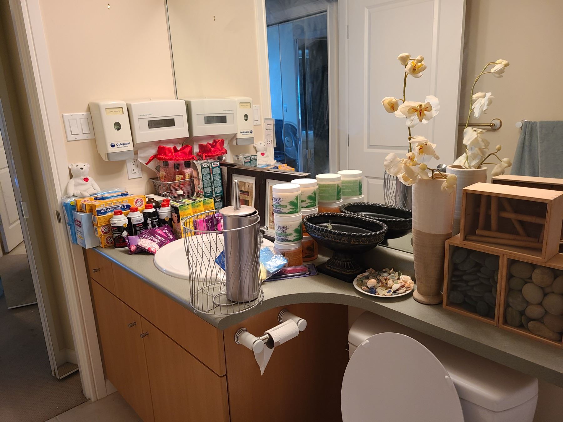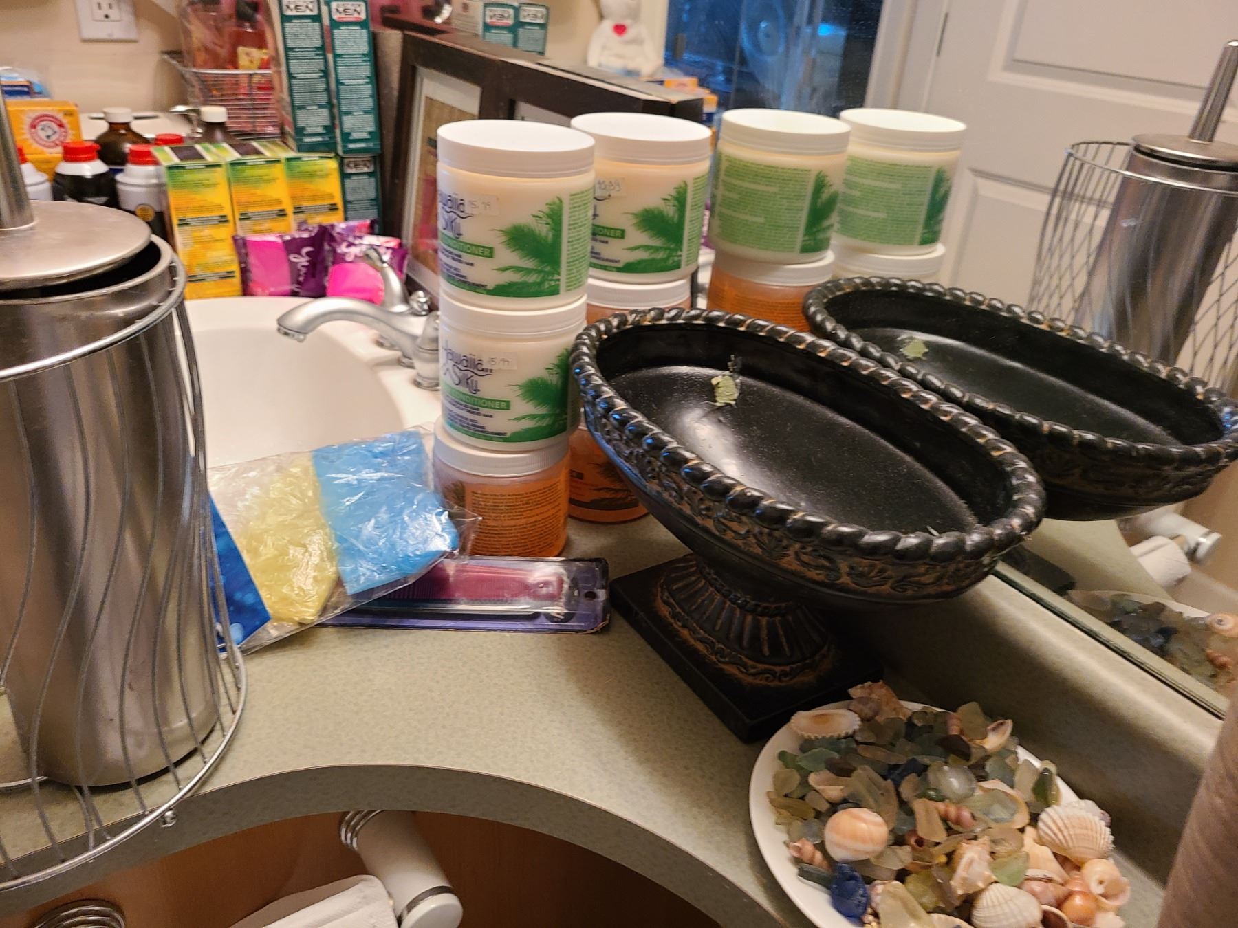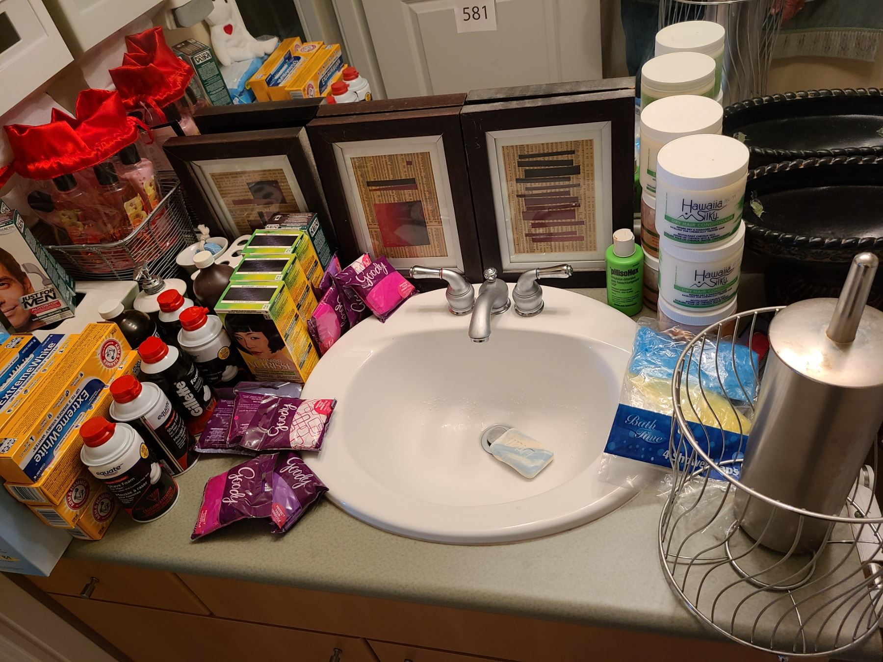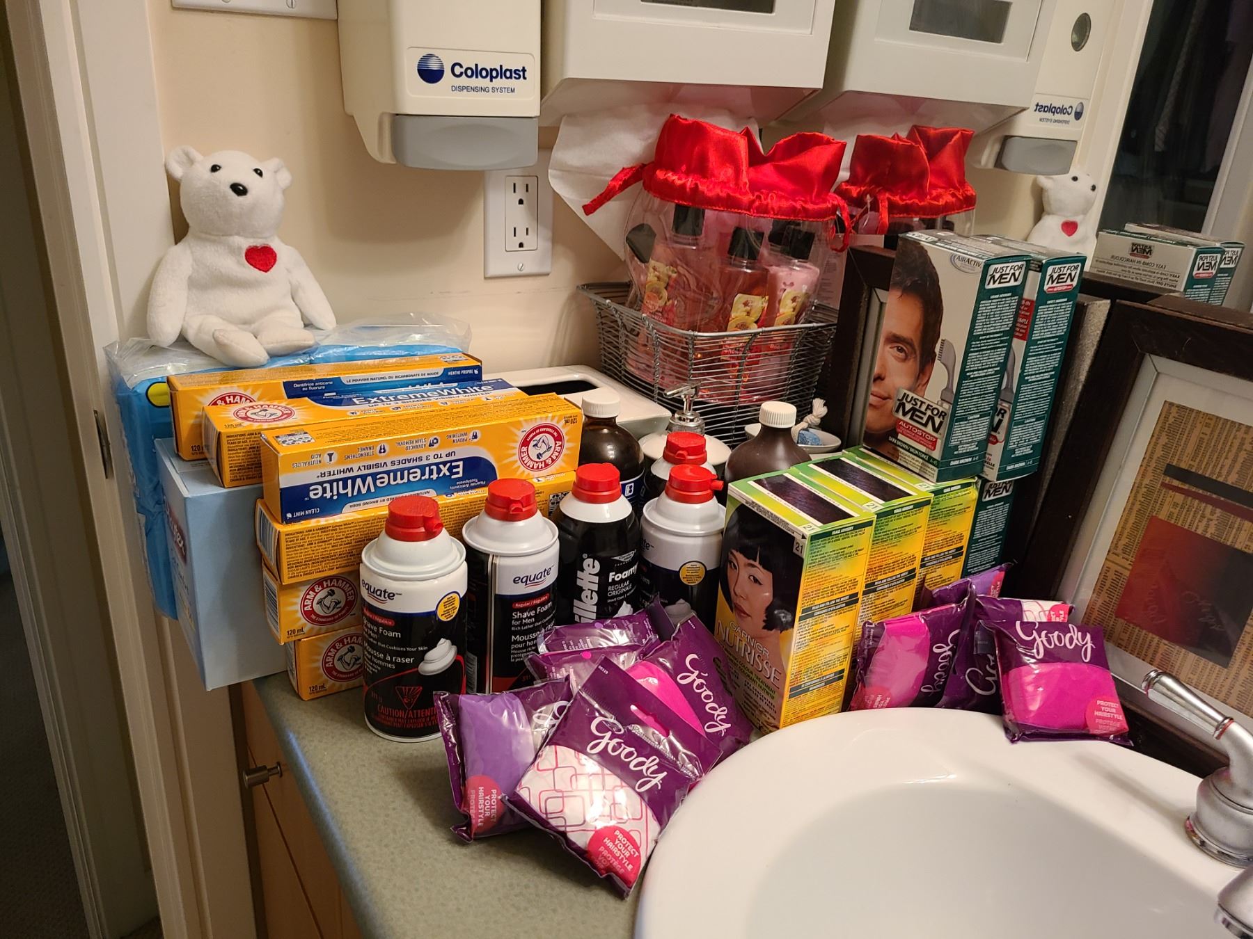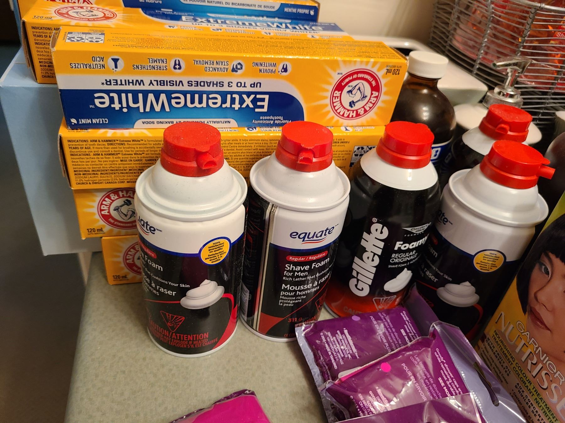 Assortment of unopened toothpaste , hair conditioner, bathroom decor and more. Pickup at 9 am