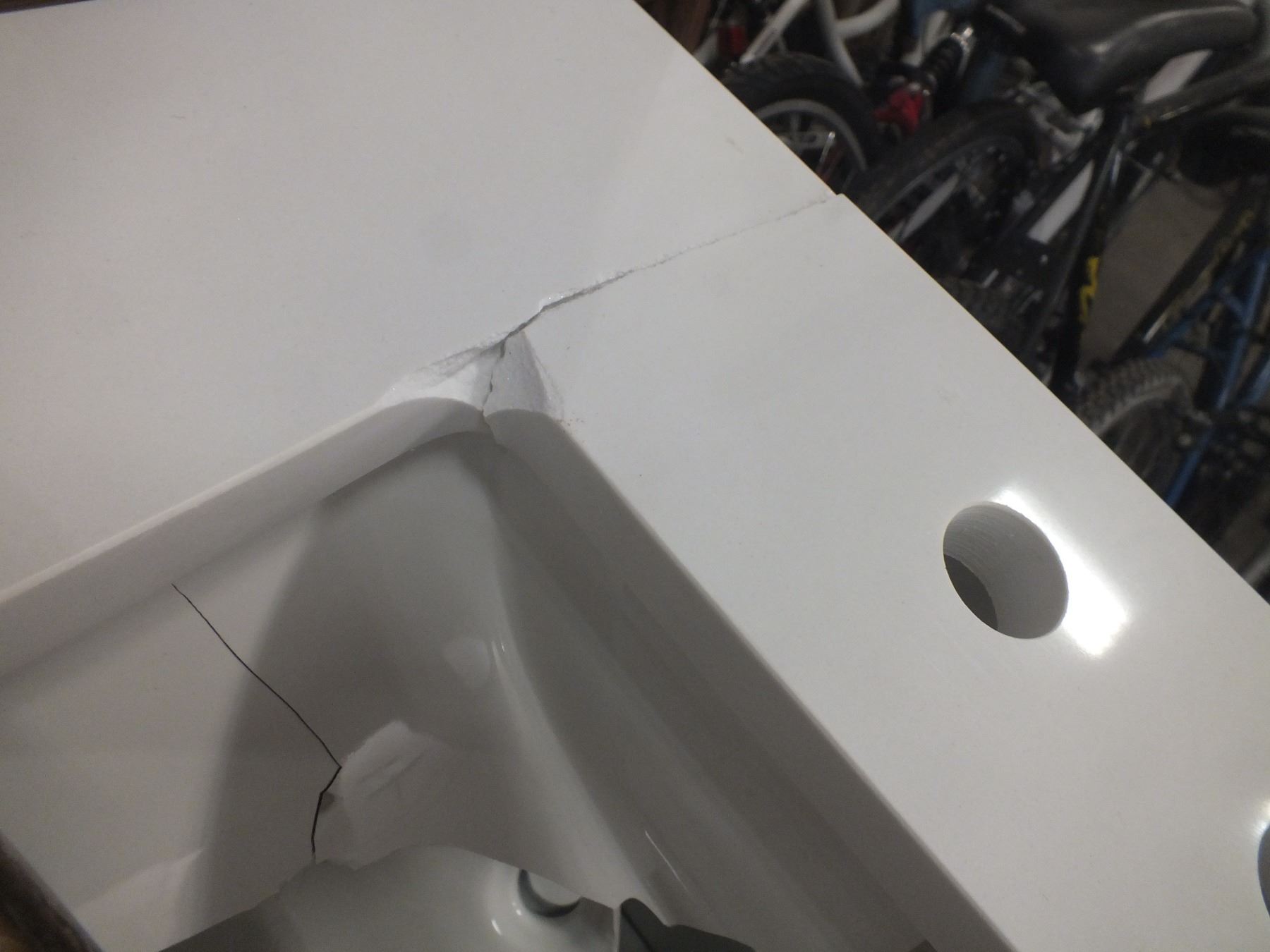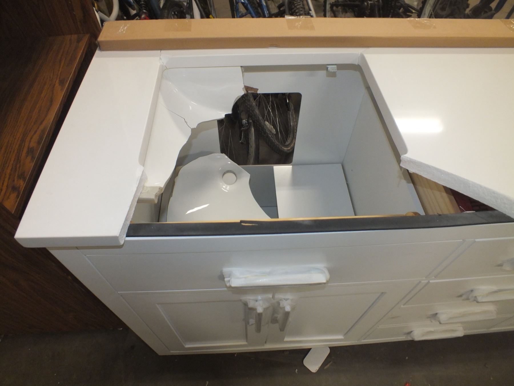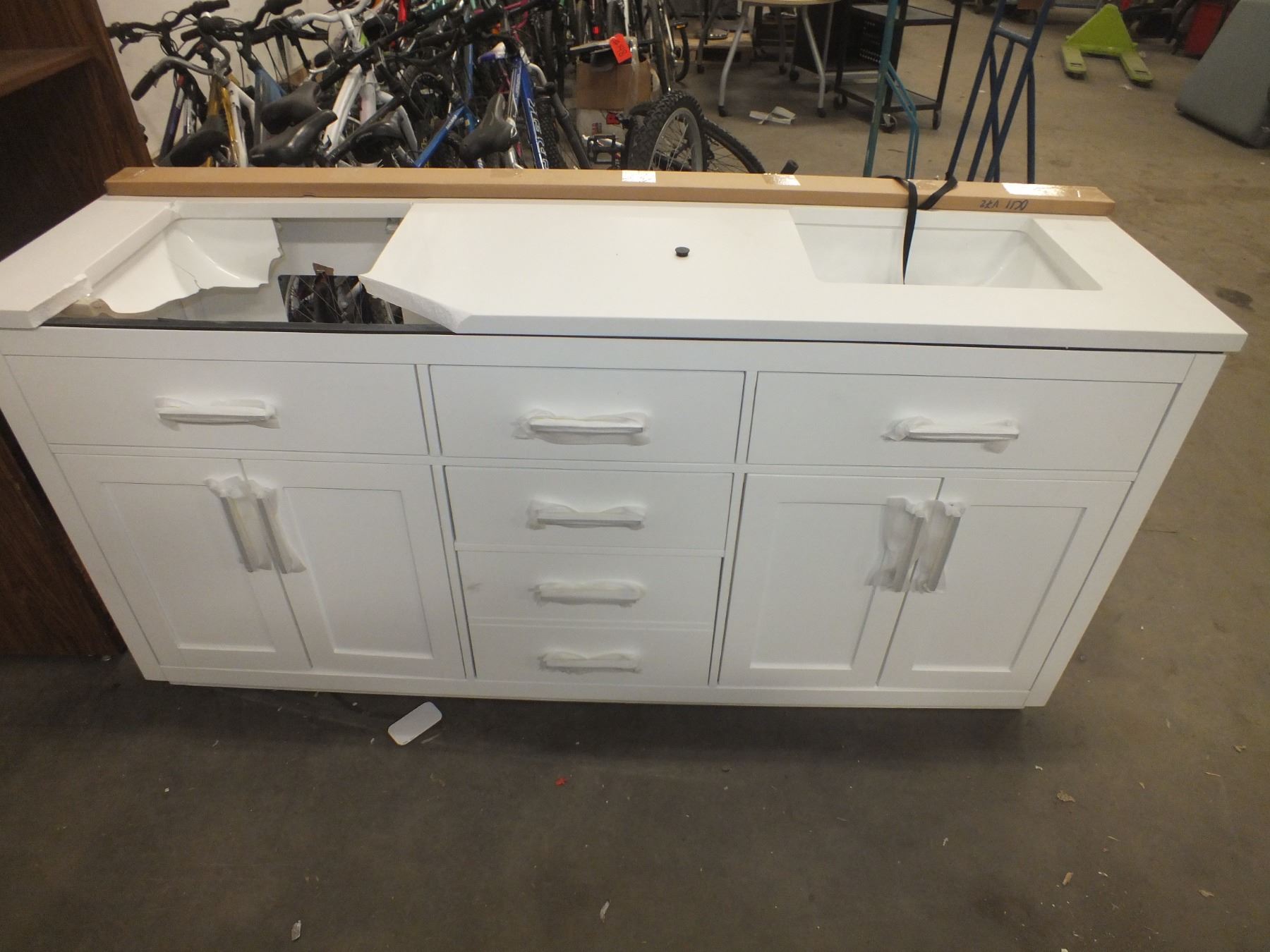 Bathroom Vanity, 72"l 22"w 35"h, damaged as seen in the photos....like new