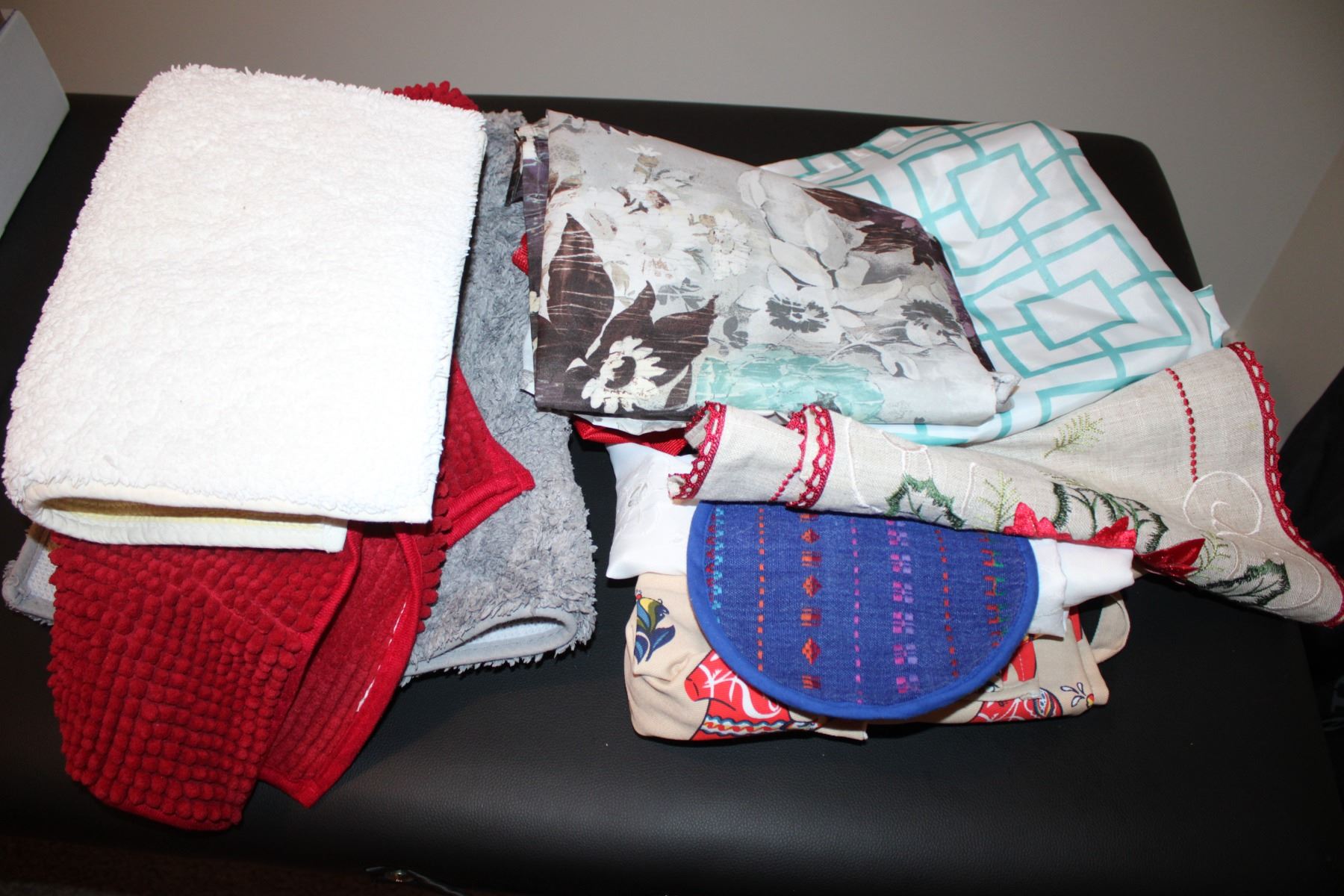 Bathroom mats, shower curtains, misc items