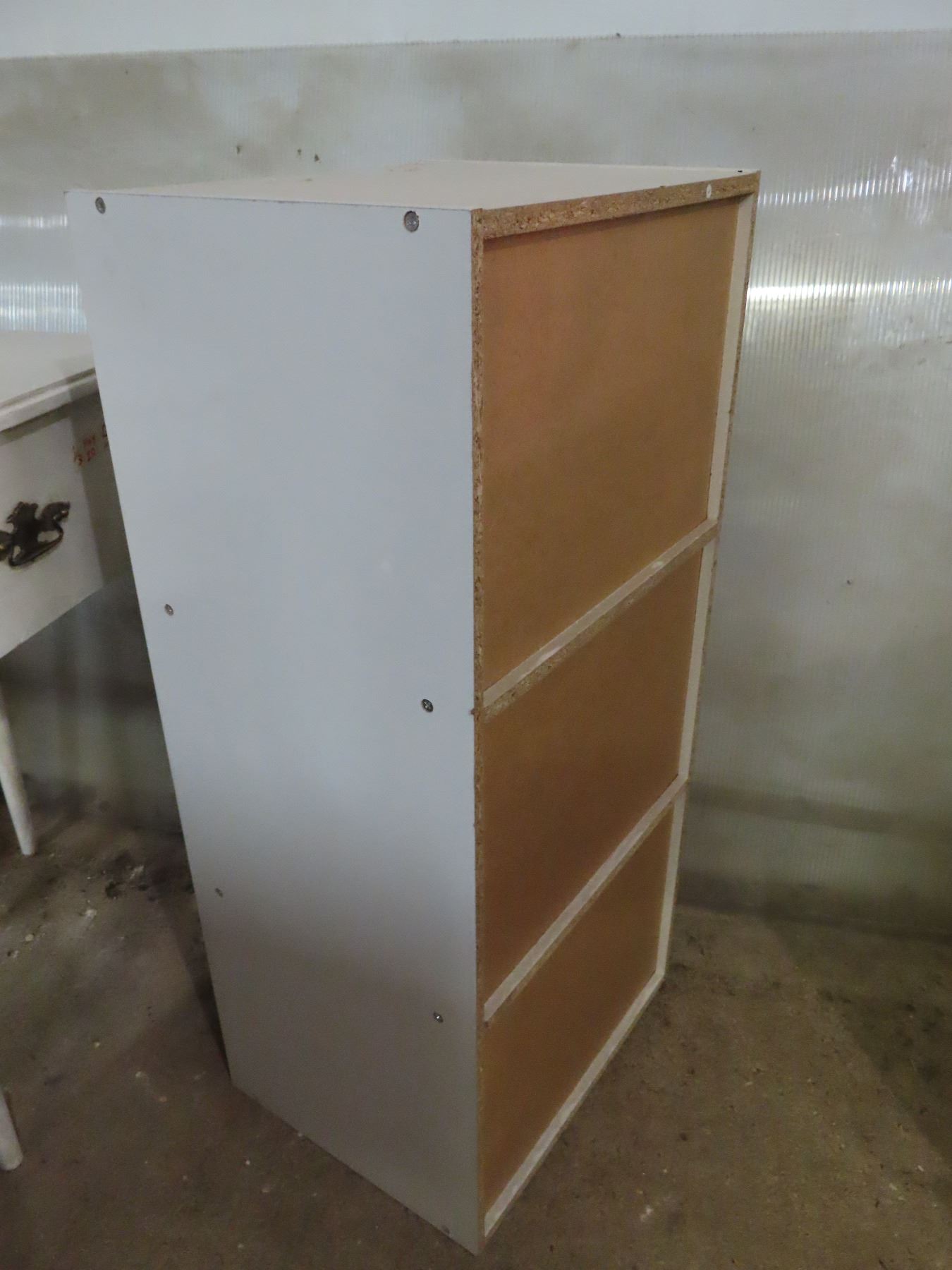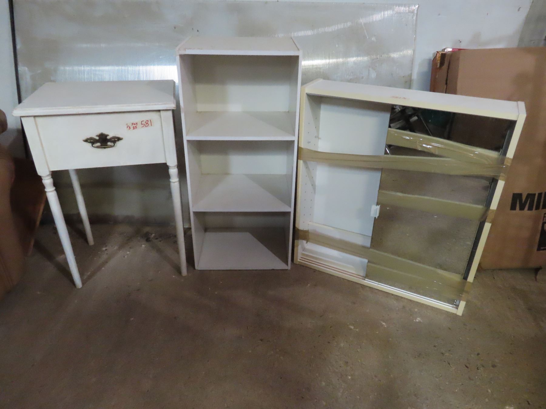 Bathroom vanity 24.5"x6"x27", Bedside table 17"x13"x26" & corner bookshelf, 14.25"x11.5"x31.25"