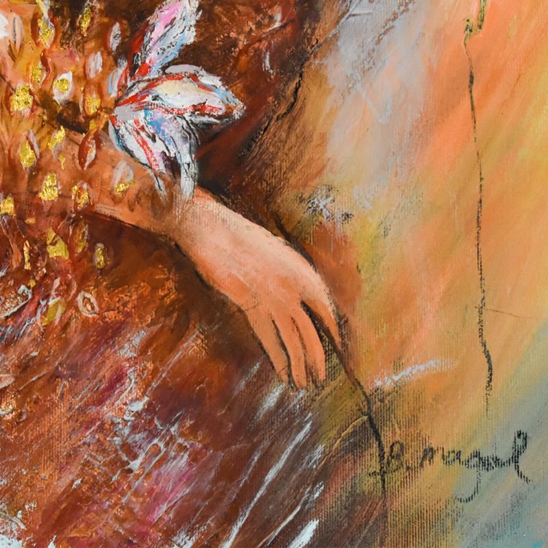 This is an original acrylic painting on canvas by Batia Magal, hand signed by the artist. Includes Letter of Authenticity. Measures approx. 20" x 24" (image).