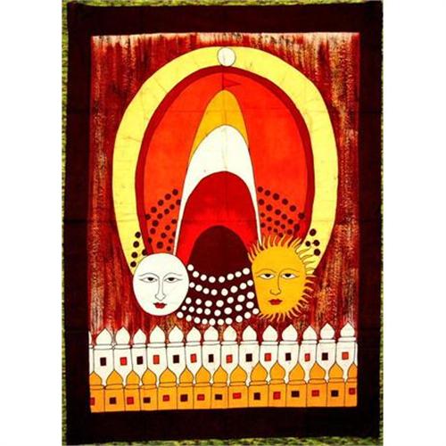 The technique of batik is a demanding one and requires unpresidented skill. Beginning with a plain white piece of cotton... the final design must be conceived before the picture is begun. The batik artist works intimately with color; if he wishes parts of his design to be light yellow, for example, all these parts must be waxed at the same time before any subsequent dyeing. He cannot isolate one part of his design and complete it before moving on to the others as an artist in oils or watercolor may; he must create his design in stages, each of which encompasses the whole picture..... The basic process of batik while simple creates a masterpiece in the hands of the seasoned painter. It consists of permeating an area of fabric with hot wax so that the wax resists the penetration of dye. Just another exotic treasure from Artisan Tribal Gems..... (b327)