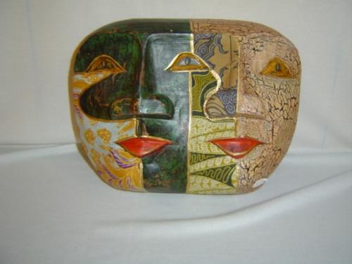 Mask provides a link to the gods, ancestors, and spirits in cultures the world over. They also transform performers into well-known characters from period in hostory. From Bali masks we believe to be embedded with protective powers, and may take the form of a dragon, cow, boar, or elephant. this mask is carved from non-endangered sofwoods and finished with non-toxic paints, sejati's mask collection, and it provides you with a unique glimpse into the Balinese cultural tradition. The masks are used in the performance of acred theatre, dance, and enactments of ancient Hindu epics.8.5"H, 10.75"W
