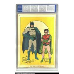 Batman #1 (DC, 1940) CGC VF 8.0 Cream to off-white pages. One of the most important and influential comics of all time, this landmark book currently ranks as number six on Overstreet's listing of the Top Golden Age Comics. An almost overnight sensation, Batman exploded into the public consciousness in 1939 with the publication of Detective #27. Scarcely a year later, he and his youthful ward, Robin the Boy Wonder, were awarded their own book, joining Superman as one of DC's headliners. The front cover, with a grinning Batman and Robin swinging over the rooftops of a sleeping city, is an image familiar to millions, having become an almost iconic image. The most recent CGC census information available to us has only two other copies of this issue graded higher (and not by much). Unrestored key books like this are becoming rarer and rarer in the marketplace, making this a treasure on so many levels. This copy must be seen to be believed and appreciated, so treat yourself with a long look at the first issue of an American classic going strong over 600 issues and 60 years later. Overstreet 2003 VF 8.0 value = $49,060. Important notice: Heritage usually auctions material at the rate of 200-250 lots per hour. On some occasions eBay Live bid software or the Internet may not be able to keep up with the pace of the auction. We recommend placing a realistic absentee bid now as insurance to avoid disappointment. Occasionally the auctioneer may eliminate or reject an eBay Live bid, and the auctioneer may also reopen a lot after the close of the eBay live bidding (usually because we missed an audience bid), and may reject your bid even if it shows you as the winning bidder. By bidding via eBay Live, you agree that Heritage may award the lot to another bidder at its sole discretion under the circumstances described above or any other reasonable circumstances. Also please note that all Heritage lots purchased through eBay Live carry a 20% Buyer's Premium. Please make sure you read the Terms and Conditions before you bid.