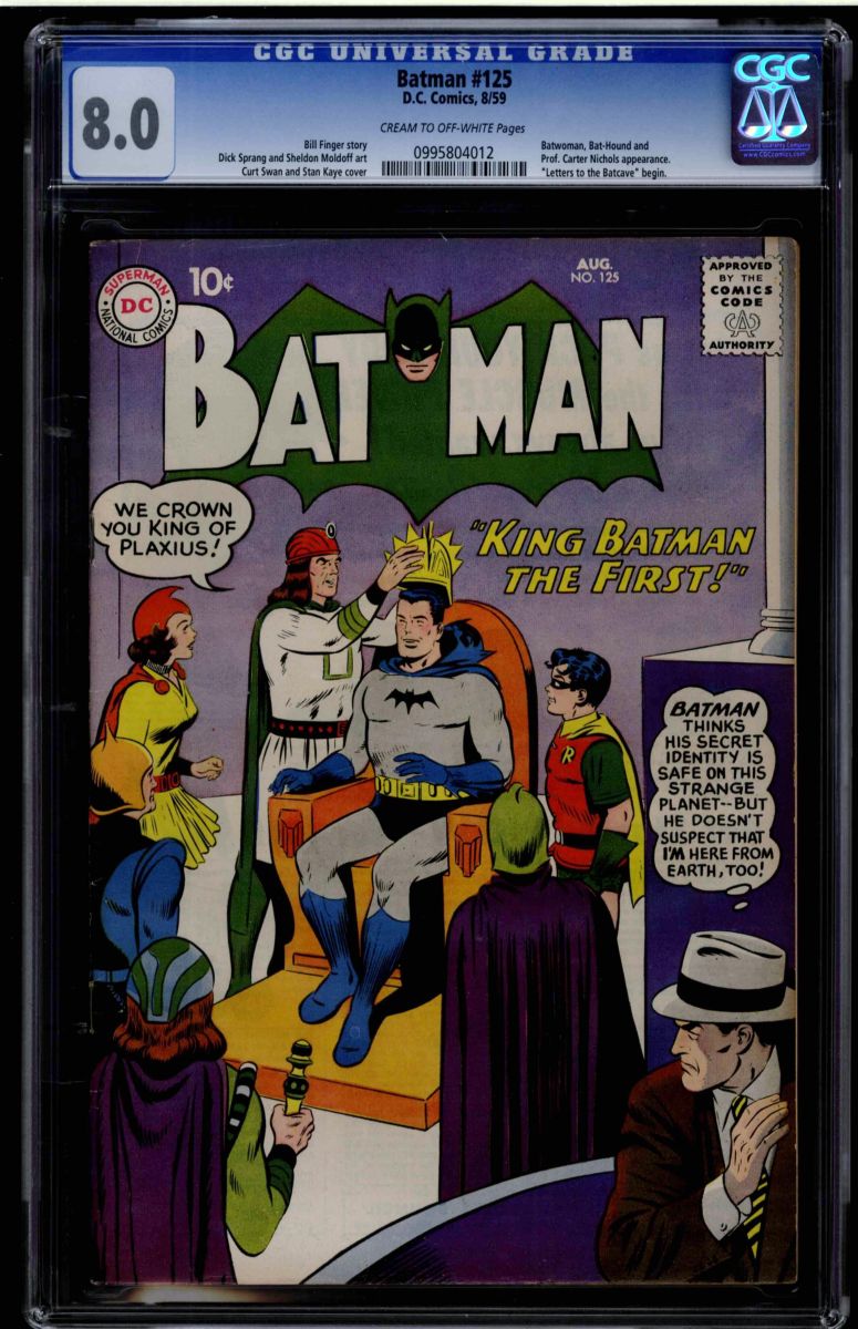 Batman #125 CGC 8.0 cream to off-white pages. Bill Finger story