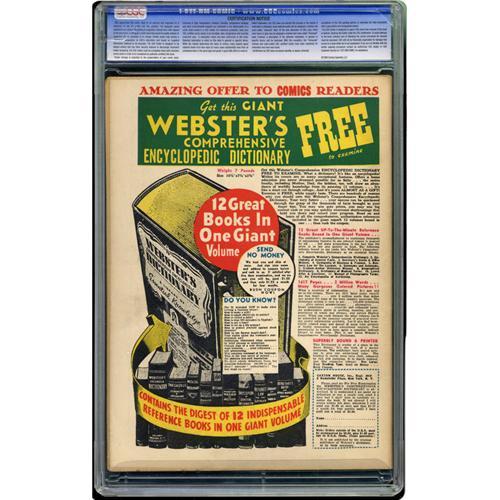 <B>Batman #13 (DC, 1942) CGC VF 8.0 Off-white to white pages.</B></I> This new collection seems to have all of those black-cover <B>Batman</B></I> books, and darn fine copies of 'em too! In this issue, there's an appearance by a famous comic book personality whose name starts with J... any guesses? If you guessed Jerry Siegel, you're right -- Superman's co-creator appears in a story! Oh yeah, that Joker guy is in the issue too. The book has a Jerry Robinson cover, with interior art by Robinson, George Roussos, Jack Burnley, and Ray Burnley. Overstreet 2006 VF 8.0 value = $1,906. CGC census 2/06: 3 in 8.0, 3 higher. <I>From the Collection of Harold Curtis.</B></I>