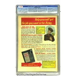 <B>Batman #18 (DC, 1943) CGC FN/VF 7.0 Off-white to white pages.</B></I> We think this Fourth of July cover is <I>dynamite</B></I> -- although Hitler, Mussolini, and Hirohito seem none too happy! Art by Bob Kane, Jerry Robinson, and Jack Burnley. Average spine distress and border wear are present, but the gloriously rich cover colors and gloss certainly hold the eye. Overstreet 2004 FN 6.0 value = $648; VF 8.0 value = $1,350. <BR><BR><B>Important notice:</B> Heritage usually auctions material at the rate of 200-250 lots per hour. On some occasions eBay Live bid software or the Internet may not be able to keep up with the pace of the auction. We recommend placing a realistic absentee bid now as insurance to avoid disappointment. Occasionally the auctioneer may eliminate or reject an eBay Live bid, and the auctioneer may also reopen a lot after the close of the eBay live bidding (usually because we missed an audience bid), and may reject your bid even if it shows you as the winning bidder. By bidding via eBay Live, you agree that Heritage may award the lot to another bidder at its sole discretion under the circumstances described above or any other reasonable circumstances. Since eBay bids are not shown to us until we open the lot on the floor, we treat those bids just like floor bids. In most cases the floor responds before the eBay bid is presented to us, due to Internet lag time, so for consistency we have made it a policy that floor bids are always considered first over tie eBay live bids. Also please note that all Heritage lots purchased through eBay Live carry a 20% Buyer's Premium. Please make sure you read the Terms and Conditions before you bid.