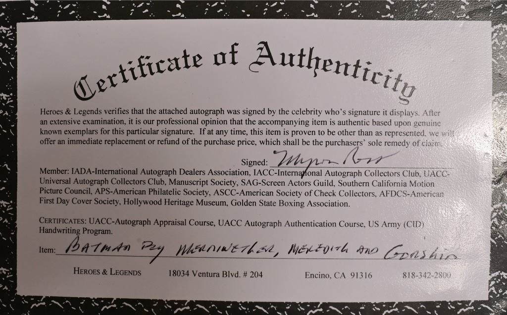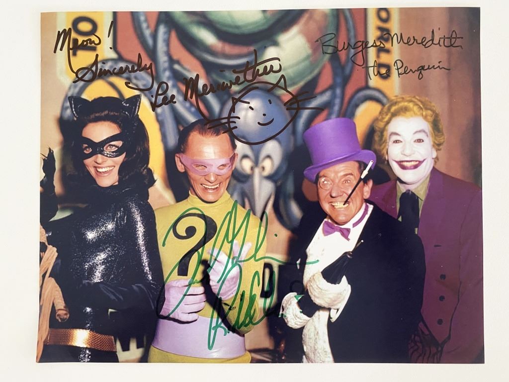 Batman 1966 Cast Signed Photo Autographed by Lee Meriwether, Burgess Meredith and Frank Gorshin. 8x10 inches. HL17580