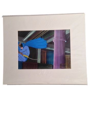 "Batman" Animation Cel (featuring "Batman" swinging into action / 1974 / Filmation Studios / 12" x 9") (Matted)