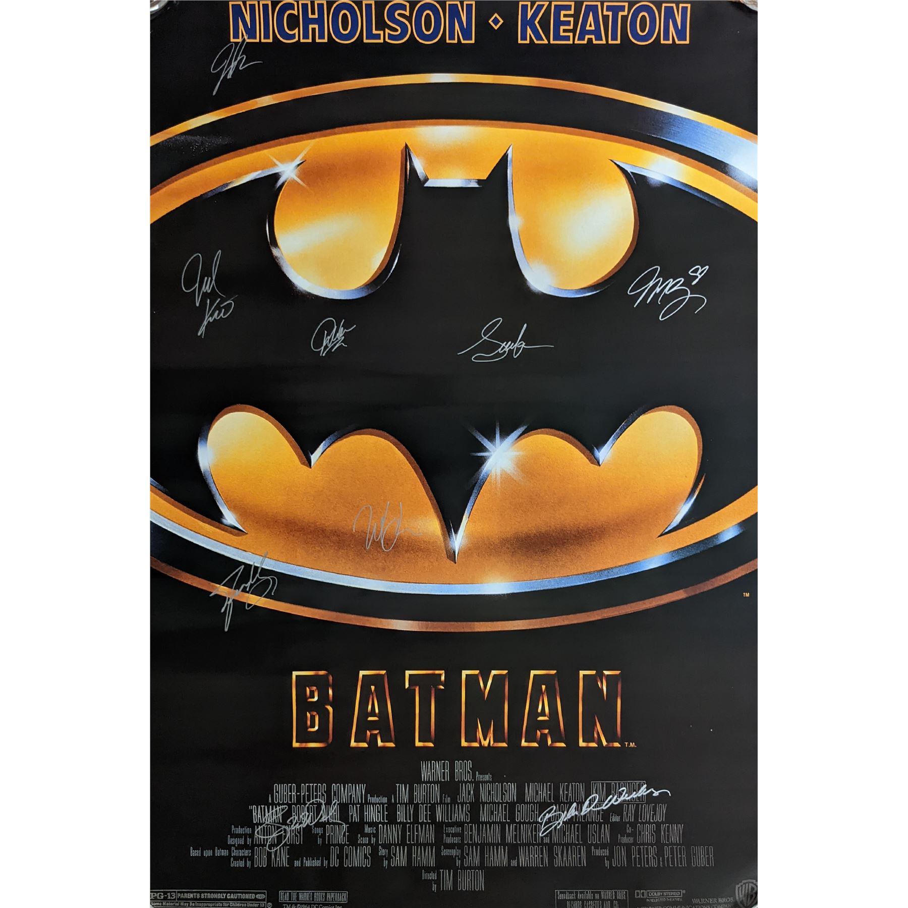 Batman 1989 Cast Signed Movie Poster Autographed by Michael Keaton, Jack Nicholson, Kim Basinger, Billy Dee Williams, Philip Tan, William Hootkins, Tracey Walter, Jack Palance and Tim Burton. 27x40 inches