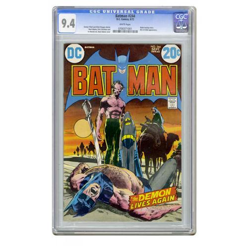 <B>Batman #244 (DC, 1972) CGC NM 9.4 White pages.</B></I> Ra's Al Ghul appearance. Robin back-up story. Cover by Neal Adams. Interior art by Adams, Dick Giordano, and Irv Novick. Overstreet 2005 NM- 9.2 value = $65. CGC census 12/05: 12 in 9.4, 8 higher.