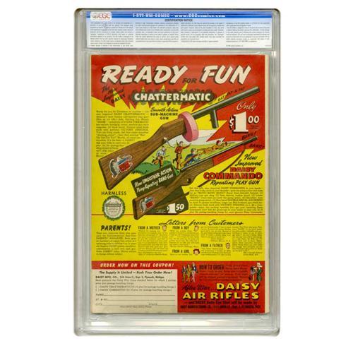 50. Since we cannot examine encapsulated notes or comics, they are sold "as is" without our grading opinion, and may not be returned for any reason. Auctioneer shall not be liable for any patent or latent defect or controversy pertaining to or arising from any encapsulated collectible. In any such instance, purchaser's remedy, if any, shall be solely against the service certifying the collectible.