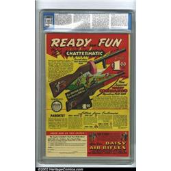 Batman #27 (DC, 1945) CGC VF/NM 9.0 Off-white to white pages. Batman, Robin and Santa Claus bring you Season's Greetings in this delightfully classic Jack Burnley Christmas cover! This issue also features a Penguin appearance and Jerry Robinson interior art. Batmans in this condition keep getting harder and harder to find. Overstreet 2002 NM 9.4 value = $2,150. Important notice: We expect to be auctioning lots at the rate of 200-250 per hour. Sometimes eBay Premier live bid software cannot keep up with that pace, so we strongly recommend that you place a realistic proxy bid now as insurance to avoid disappointment. Also please note that all Heritage/CAA lots purchased through eBay Premier carry a 20% Buyer's Premium.