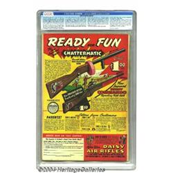 <B>Batman #27 (DC, 1945) CGC VG- 3.5 Light tan to off-white pages.</B></I> Batman and Robin meet Santa Claus on this classic Christmas cover by Jack Burnley. Jerry Robinson art. Crisp cover colors. Overstreet 2004 VG 4.0 value = $400. <BR><BR><B>Important notice:</B> Heritage usually auctions material at the rate of 200-250 lots per hour. On some occasions eBay Live bid software or the Internet may not be able to keep up with the pace of the auction. We recommend placing a realistic absentee bid now as insurance to avoid disappointment. Occasionally the auctioneer may eliminate or reject an eBay Live bid, and the auctioneer may also reopen a lot after the close of the eBay live bidding (usually because we missed an audience bid), and may reject your bid even if it shows you as the winning bidder. By bidding via eBay Live, you agree that Heritage may award the lot to another bidder at its sole discretion under the circumstances described above or any other reasonable circumstances. Since eBay bids are not shown to us until we open the lot on the floor, we treat those bids just like floor bids. In most cases the floor responds before the eBay bid is presented to us, due to Internet lag time, so for consistency we have made it a policy that floor bids are always considered first over tie eBay live bids. Also please note that all Heritage lots purchased through eBay Live carry a 20% Buyer's Premium. Please make sure you read the Terms and Conditions before you bid.