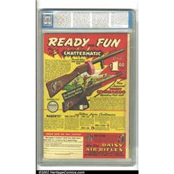Batman #27 (DC, 1945). One of the best of DC's Christmas covers, Jack Burnley's art is truly outstanding. This issue has a Penguin story with art by Jerry Robinson, and is in superb condition, being flat and crisp with only the slightest wear. Only the most minor defects keep this book out of the NM range. CGC VF+ 8.5 Off-white to white pages. Overstreet 2001 FN 6.0 value = $584; NM 9.4 value = $1,850.  Important notice: We expect to be auctioning lots at the rate of 200-250 per hour. Sometimes eBay Premier live bid software cannot keep up with that pace, so we strongly recommend that you place a realistic proxy bid now as insurance to avoid disappointment. Also please note that all Heritage/CAA lots purchased through eBay Premier carry a 20% Buyer's Premium.