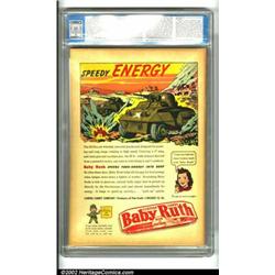 Batman #28 (DC, 1945). Another investment grade Batman with a beautiful red cover and virtually no visible wear. Great eye-appeal. CGC notes, "Moderate tanning edges interior front and back cover". CGC VF/NM 9.0 Cream to off-white pages. Overstreet 2001 NM 9.4 value = $1,400. Important notice: We expect to be auctioning lots at the rate of 200-250 per hour. Sometimes eBay Premier live bid software cannot keep up with that pace, so we strongly recommend that you place a realistic proxy bid now as insurance to avoid disappointment. Also please note that all Heritage/CAA lots purchased through eBay Premier carry a 20% Buyer's Premium.