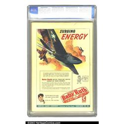 Batman #32 Double cover (DC, 1945) CGC NM 9.4 Off-white to white pages. Batman and Robin walk with a Musketeer on this cover splashed in red, featuring a Joker story inside. Not only is this book a gorgeous NM 9.4, but it also has two covers, the interior grading a NM- 9.2. The back cover is perfectly white, with sharp corners and an immaculate spine. And did we mention this is the highest graded copy on CGC's census? Overstreet 2002 NM 9.4 value = $1,225. Important notice: We expect to be auctioning lots at the rate of 200-250 per hour. Sometimes eBay Premier live bid software cannot keep up with that pace, so we strongly recommend that you place a realistic proxy bid now as insurance to avoid disappointment. Also please note that all Heritage/CAA lots purchased through eBay Premier carry a 20% Buyer's Premium. Please make sure you read the Terms and Conditions.
