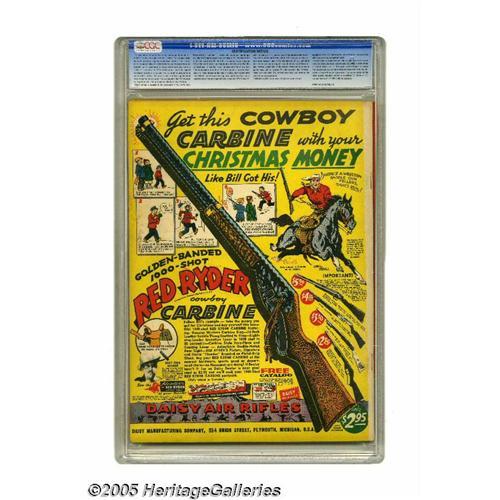 <B>Batman #4 (DC, 1940) CGC FN- 5.5 Off-white pages.</B></I> Virtually every early issue of this title merits special notation in Overstreet; no wonder they continue to be in high demand by collectors year after year, generation after generation. The Joker makes his third appearance in this issue, which also occasions the first mention of Gotham City in a Batman comic book. Bob Kane and Jerry Robinson collaborate on the cover and story art. Overstreet 2005 FN 6.0 value = $2,031. CGC census 9/05: 3 in 5.5, 16 higher. <BR><BR><B>Important notice:</B> Heritage usually auctions material at the rate of 200-250 lots per hour. On some occasions eBay Live bid software or the Internet may not be able to keep up with the pace of the auction. We recommend placing a realistic absentee bid now as insurance to avoid disappointment. Occasionally the auctioneer may eliminate or reject an eBay Live bid, and the auctioneer may also reopen a lot after the close of the eBay live bidding (usually because we missed an audience bid), and may reject your bid even if it shows you as the winning bidder. By bidding via eBay Live, you agree that Heritage may award the lot to another bidder at its sole discretion under the circumstances described above or any other reasonable circumstances. Since eBay bids are not shown to us until we open the lot on the floor, we treat those bids just like floor bids. In most cases the floor responds before the eBay bid is presented to us, due to Internet lag time, so for consistency we have made it a policy that floor bids are always considered first over tie eBay live bids. Also please note that all Heritage lots purchased through eBay Live carry a 20% Buyer's Premium. Please make sure you read the Terms and Conditions before you bid. This lot is being auctioned in conjunction with a live floor auction by Heritage Galleries & Auctioneers. All final auction and invoice information will be supplied by Heritage Galleries & Auctioneers, and all other information