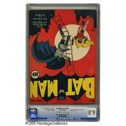 <B>Batman #4 (DC, 1940) CGC FN 6.0 Off-white to white pages.</B></I> Just about everything a Batman fan could ask for is found in issue #4. Start with only the third appearance of legendary villain the Joker, and add the fact that Gotham City is mentioned by name for the first time ever here. The cover and interior art are by Bob Kane and Jerry Robinson. Overstreet 2004 FN 6.0 value = $1,965. CGC census 12/04: 2 in 6.0, 13 higher. <I>From the Northern Lights Collection.</B></I>