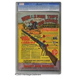 <B>Batman #5 (DC, 1941) CGC VG/FN 5.0 White pages.</B></I> "Batmobile" is a household word -- even your grandma knows that's the name of Batman's car. So the vehicle's first appearance in issue #5 is quite a significant event. Batman had driven other cars previously (mostly red sedans, believe it or not) but this was the debut of the car with the Bat-head front that everyone knows and loves. There's also one of the earliest appearances of the Joker -- this time the Prince of Pranksters has a scheme to lure millionaires to an offshore gambling ship. The book has a Bob Kane cover and art by Kane and Jerry Robinson. Overstreet 2004 VG 4.0 value = $940; FN 6.0 value = $1,410. CGC census 12/04: 5 in 5.0, 32 higher. <I>From the Northern Lights Collection.</B></I>
