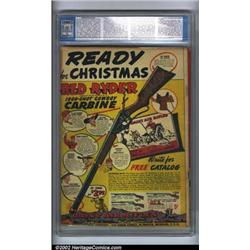 Batman #8 (DC, 1942). One of the more recognizable Batman covers, this one features an infinity cover. Any of the single digit Batmans are great to own, especially in solid grade like this one. A small chip off the top spine, and a small stain on the right corner, but still a pretty copy with deep colors. CGC FN+ 6.5 Off-white pages. Overstreet 2001 FN 6.0 value = $1,030  Important notice: We expect to be auctioning lots at the rate of 200-250 per hour. Sometimes eBay Premier live bid software cannot keep up with that pace, so we strongly recommend that you place a realistic proxy bid now as insurance to avoid disappointment. Also please note that all Heritage/CAA lots purchased through eBay Premier carry a 20% Buyer's Premium.