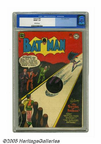 <B>Batman #83 (DC, 1954) CGC FN/VF 7.0 Off-white pages.</B></I> Dick Sprang cover. Sprang and Sheldon Moldoff art. Overstreet 2005 FN 6.0 value = $177; VF 8.0 value = $369. CGC census 1/05: 1 in 7.0, 1 higher. <I>From the Northern Lights Collection.</B></I>