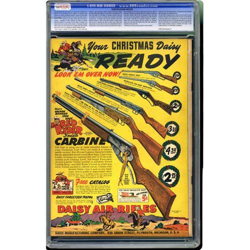 <B>Batman #9 (DC, 1942) CGC FN+ 6.5 Off-white to white pages.</B></I> We would take this copy over a couple of higher-graded copies we have seen -- give it your full consideration and judge for yourself! The black cover is certainly one of the more famous ones in the title's run, and this issue also boasts a Joker story and the first Batman Christmas story. Jack Burnley drew the cover and Bob Kane and aides Jerry Robinson and George Roussos handled the interior art. Overstreet 2006 FN 6.0 value = $1,044; VF 8.0 value = $2,262. CGC census 2/06: 4 in 6.5, 17 higher. <I>From the Collection of Harold Curtis.</B></I>