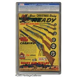 <B>Batman #9 (DC, 1942) CGC VG/FN 5.0 Off-white to white pages.</B></I> Jack Burnley's cover is one of the best-known of all Batman covers. Inside the issue, the Joker busts out of jail and wastes no time cooking up a money-laundering scheme which only the Dynamic Duo can (try to) foil. This issue also has the very first Batman Christmas story. The interior artists include Jerry Robinson and George Roussos. Overstreet 2004 VG 4.0 value = $682; FN 6.0 value = $1,023. CGC census 12/04: 1 in 5.0, 20 higher. <I>From the Northern Lights Collection.</B></I>