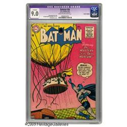 <B>Batman #94 (DC, 1955) CGC Apparent VF/NM 9.0 Cover Trimmed Cream to off-white pages.</B></I> Considering that CGC's census lists just one unrestored copy of #94 with a higher grade than 9.0, this is one of the nicest copies around. CGC does note, "Top edge of cover trimmed." Win Mortimer cover with Sheldon Moldoff art. Overstreet 2004 2.0 value = $50; VG 4.0 value = $100; FN 6.0 value = $150; VF 8.0 value = $300. <I>From the Northern Lights Collection.</B></I>