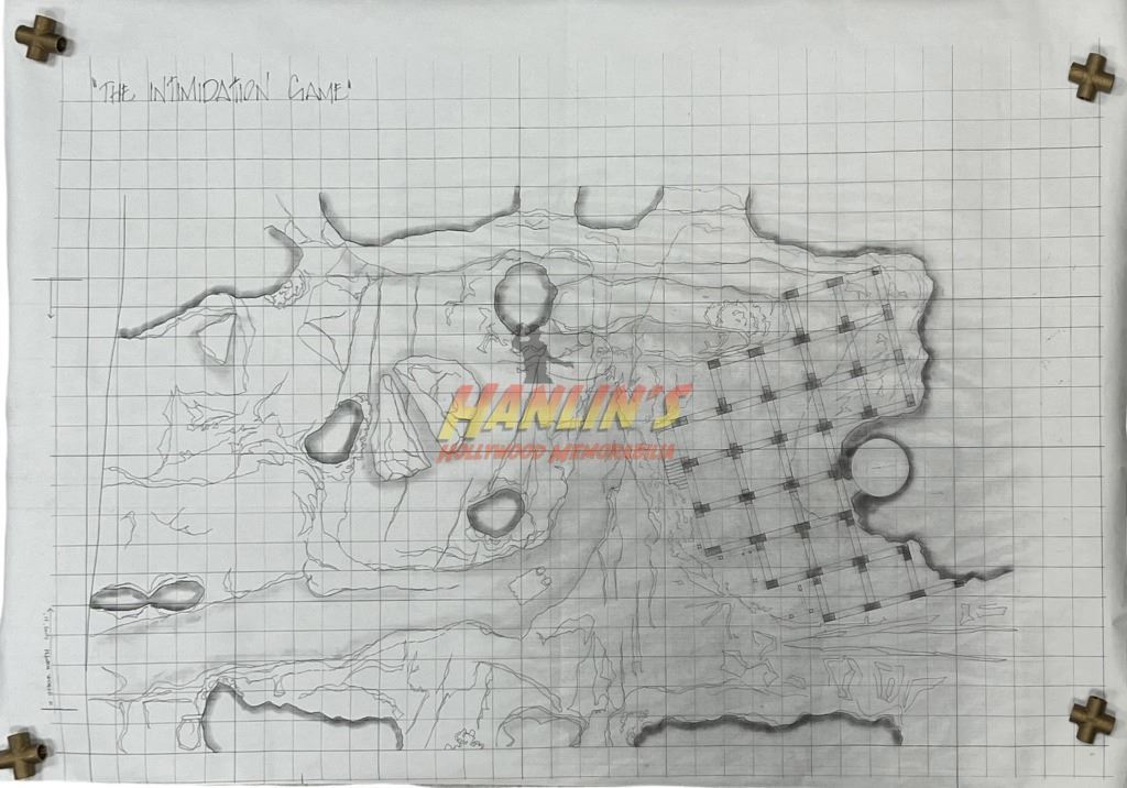 Original production blueprint for the 'Batcave' from the production of the Christopher Nolan directed superhero film 'Batman Begins' (2005), It stars Christian Bale, Michael Caine, Liam Neeson, Katie Holmes, Gary Oldman, Cillian Murphy, Tom Wilkinson, Rutger Hauer, Ken Watanabe, and Morgan Freeman.