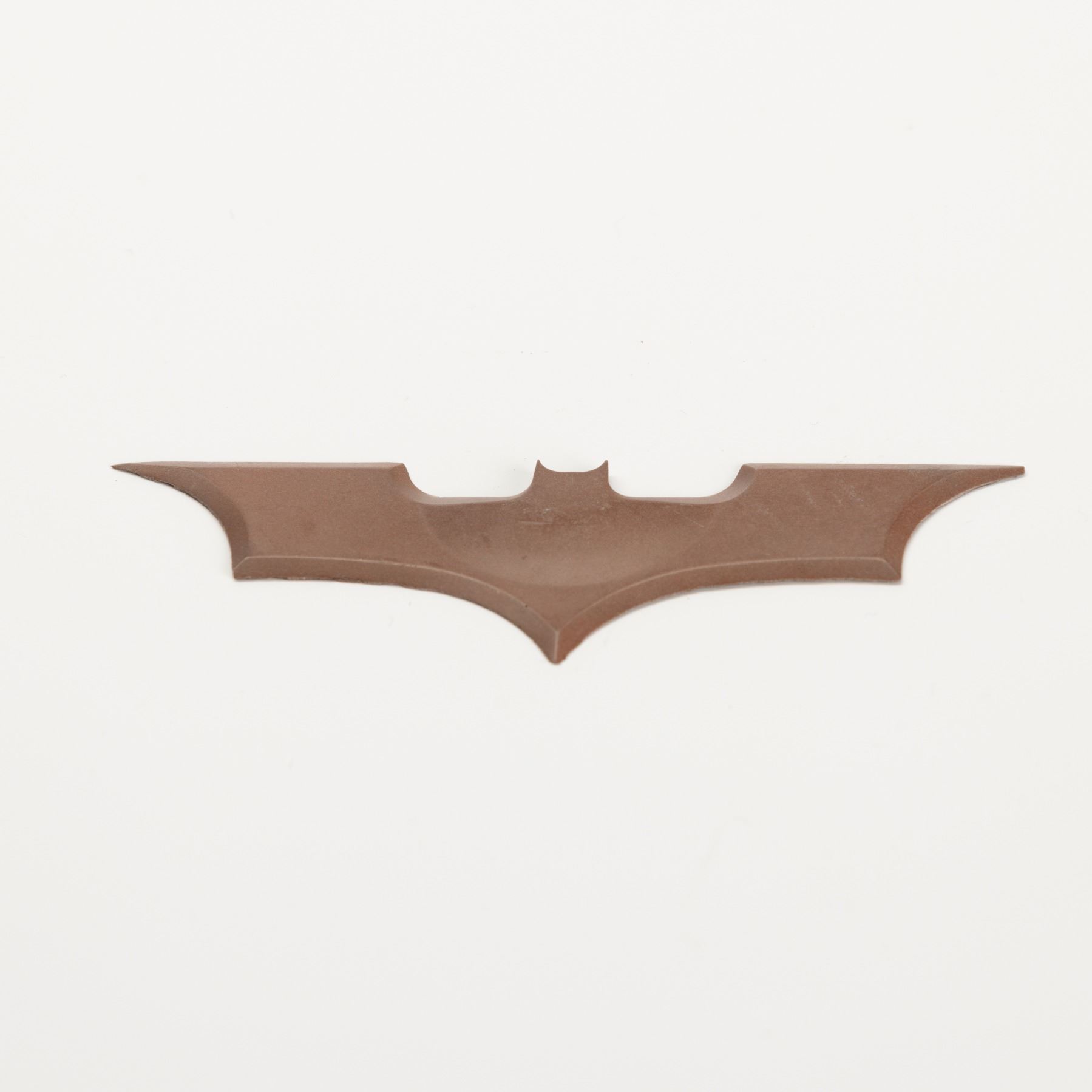 Original Batarang from the production of the 2005 Christopher Nolan superhero film Batman Begins. A young Bruce Wayne (Christian Bale) travels to the Far East, where he's trained in the martial arts by Henri Ducard (Liam Neeson), a member of the mysterious League of Shadows. When Ducard reveals the League's true purpose -- the complete destruction of Gotham City -- Wayne returns to Gotham intent on cleaning up the city without resorting to murder. With the help of Alfred (Michael Caine), his loyal butler, and Lucius Fox (Morgan Freeman), a tech expert at Wayne Enterprises, Batman is born.